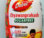 Чьяванпракаш - продукт компанії Дабур, що не містить цукру. При цьому зберігає всі корисні властивості класичного рецепту. Це низькокалорійний дієтичний джем: одна чайна ложка містить лише 20 калорій. Дабур Чаванпраш без цукру призначений для хворих, які страждають на надмірну вагу, ожиріння, цукровий діабет 2-го типу, синдром хронічної втоми. Формула Чаванпрашу Дабур без цукру унікальна і не використовується жодними іншими виробниками.