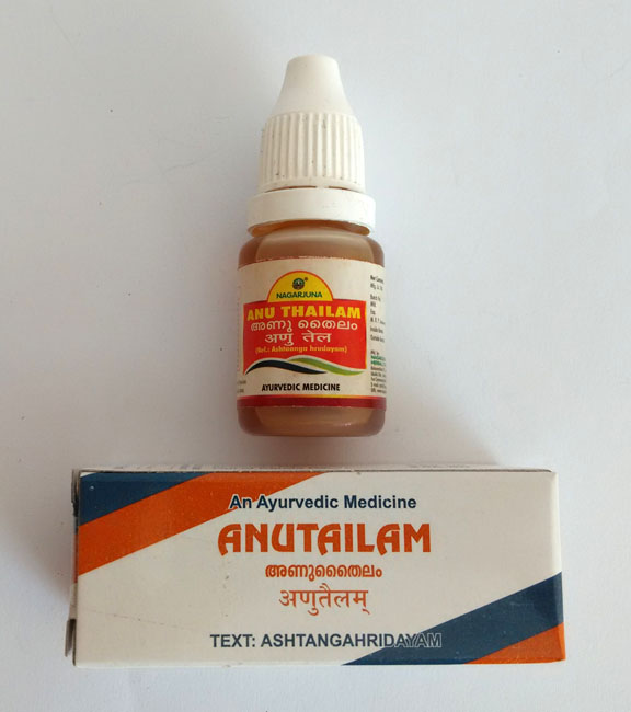 В процедуре очищения носовых путей обычно применяется масляный состав, который смягчает и снимает воспаления слизистых оболочек носа, который также используется в лечении заболеваний горла и органов чувств – ушей и глаз, позволяет укрепить и тонизировать ткани этих частей тела. Аюрведические масляные капли Ану Тайлам при закапывании в нос и уши очищают каналы Праны, увеличивают снабжение их кислородом, что оказывает положительное воздействие на мозговую деятельность. Масло Ану Тайлам успешно применяется при воспалениях придаточных пазух носа, рините. Его действие отлично от известных препаратов, которые сужают слизистую и дают временное облегчение, не излечивая причины. Эти капли выводят слизь из носовых пазух, помогает восстановить потерянное обоняние, способствует улучшению циркуляции крови в сосудах носа и около носа, что положительно сказывается при аллергических реакциях, когда присутствует заложенность носа без выделений.