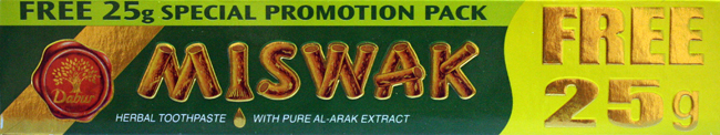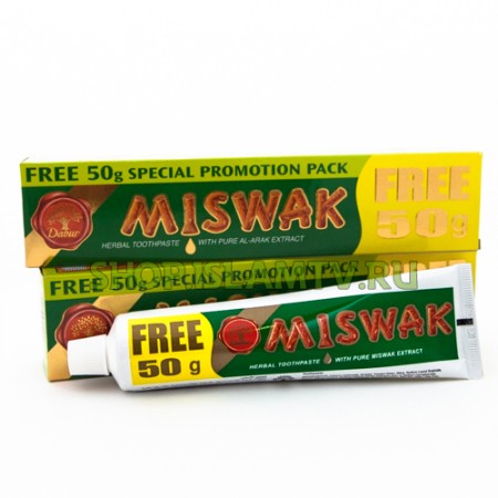 Відома зубна паста Miswak - це зубна паста на основі чистого компонента дерева Місвак, зубні щітки з якого використовують на сході століттями. Зубна паста є прекрасним антибактеріальним засобом, профілактикою карієсу, забезпечує здоров'я ясен і силу зубів від самого коріння.